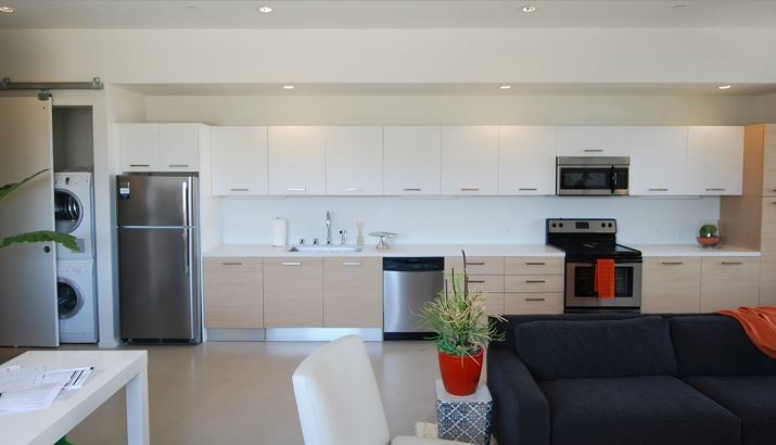 Modern, European Loft-Style living. High Ceilings. Finished Concrete Floors. All units have a private balcony or patio. All stainless steel appliances. In-unit washer/dryer.