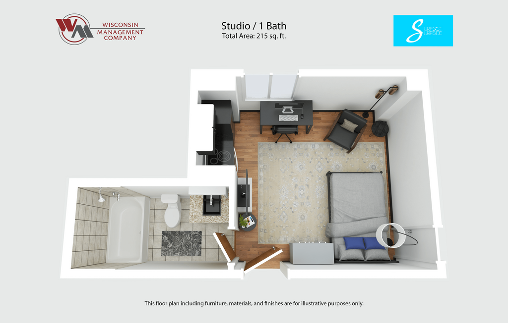 Studio, 1 Bath, 225 sq ftModel Gallery