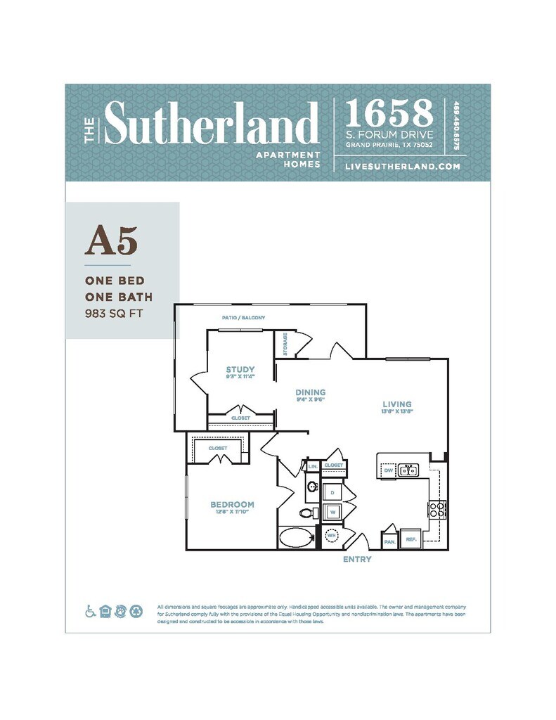 The Sutherland offers Studio to 2 Bedroom apartments starting from $1,340 and having 626–1,419 sq ft. Here is the current pricing and availability: