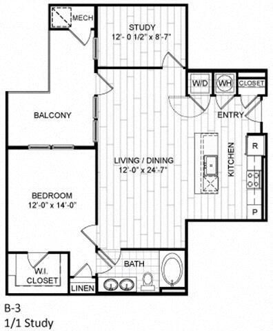 Apartment Model: 1 Bed, 1 Bath - A1TFrom $2,0131 Bedroom, 1 Bath, 765-796 sq ftAvailable NowFloor plans are artist's rendering. All dimensions are approximate. Actual product and specifications may vary in dimension or detail. Not all features are available in every rental home. Please see a representative for details.