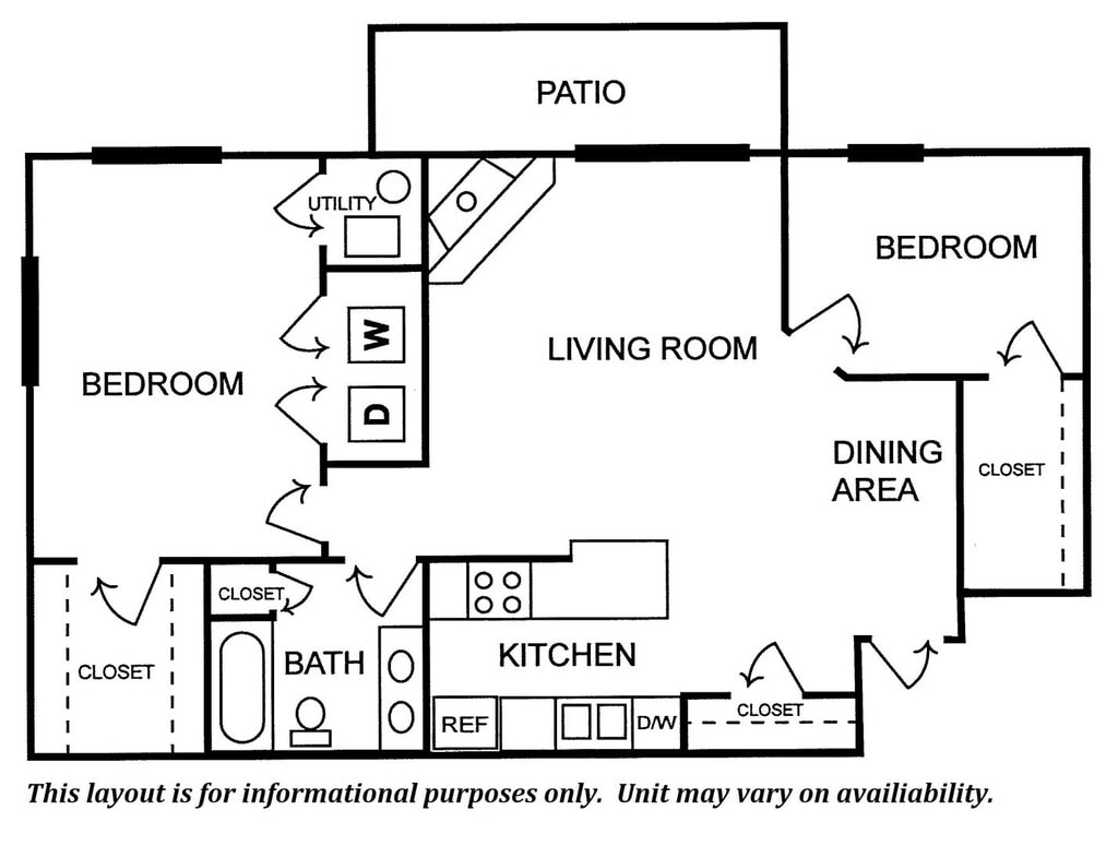 Apartment Unit: Apartment Model: 2BR/1.0BA$1,0802 Bedroom, 1 Bath, 1050 sq ftAvailable Now![]()