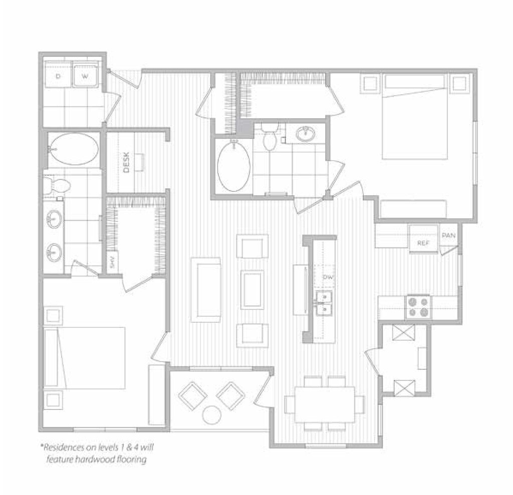 1 Bed 1 Bath - A5 - Floorplan 1 2 Bedrooms