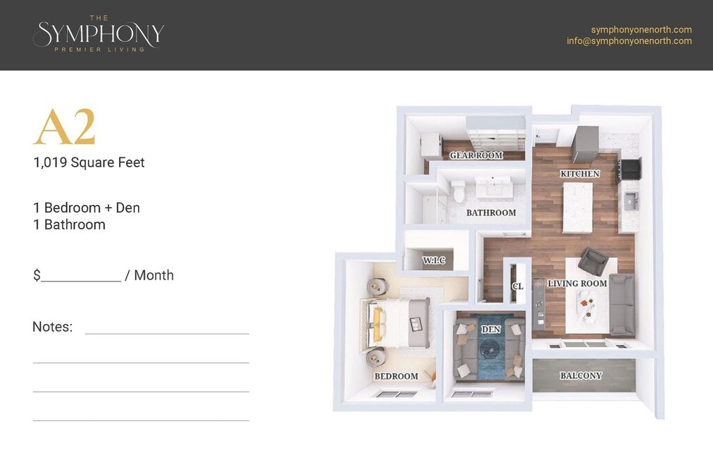 The Symphony at OneNorth offers 1 to 3 Bedroom apartments starting from $1,545 and having 656–1,694 sq ft. Here is the current pricing and availability:
