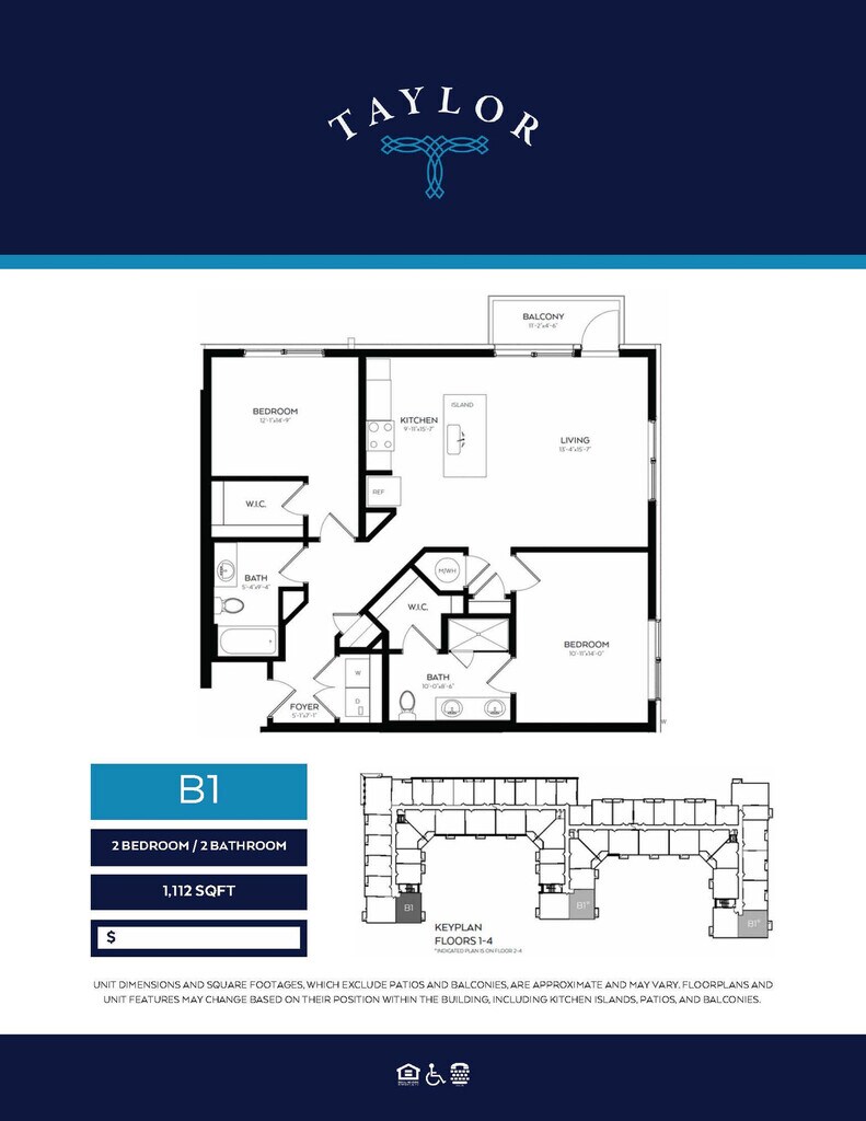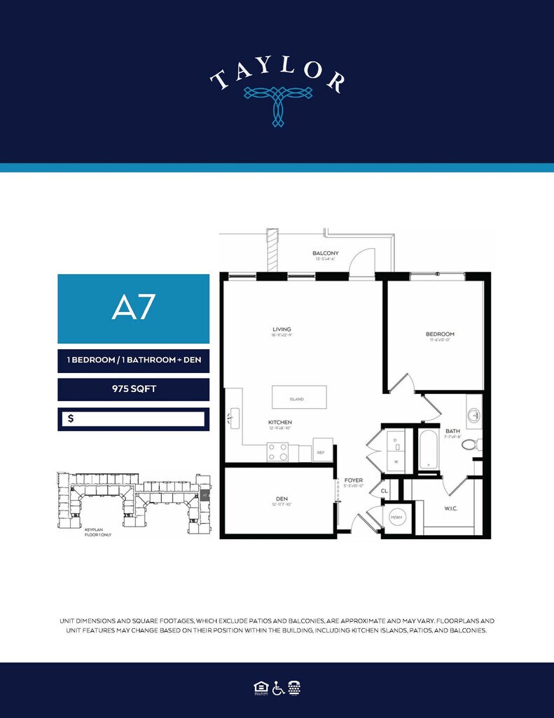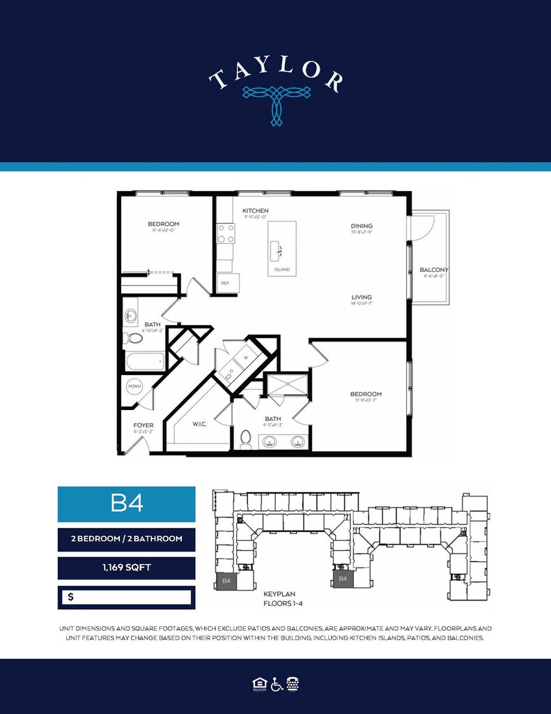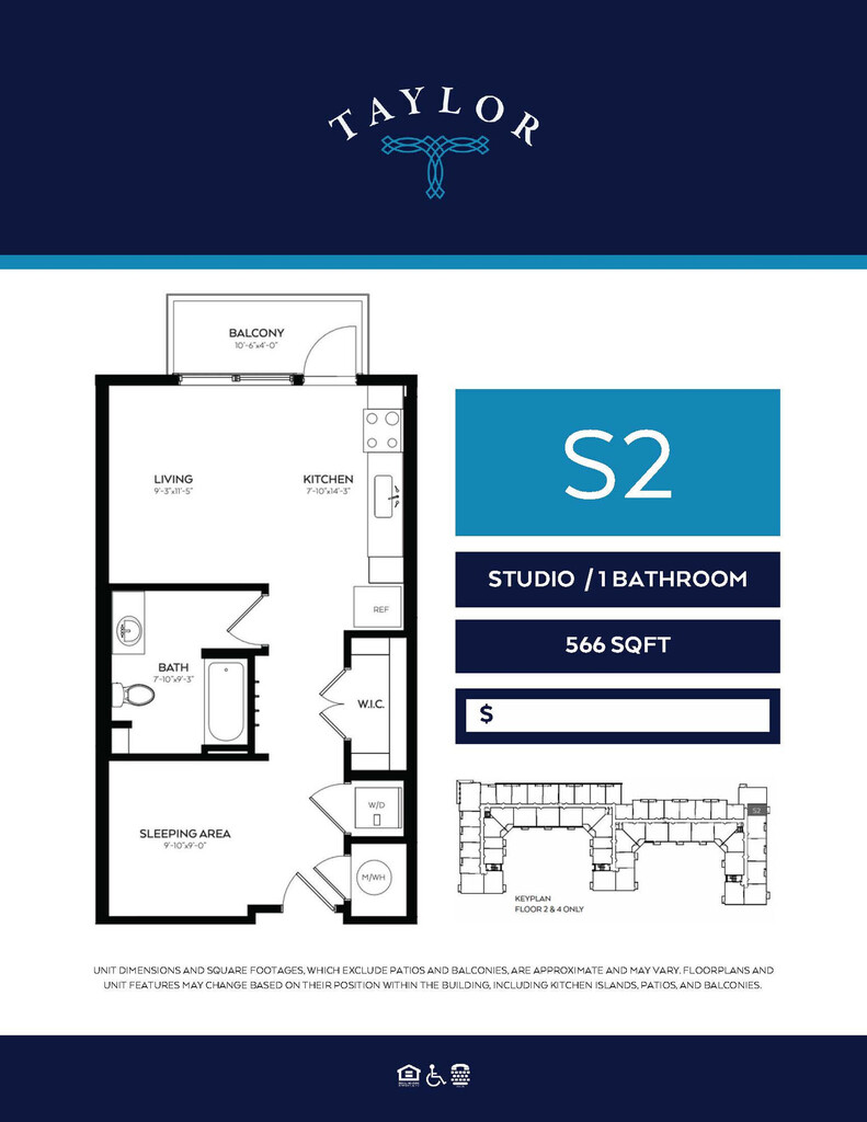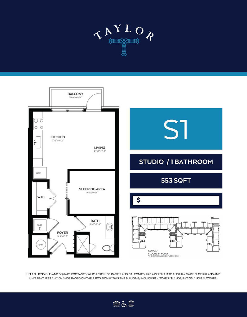 The Taylor offers Studio to 2 Bedroom apartments starting from $1,154 and having 553–1,553 sq ft. Here is the current pricing and availability: