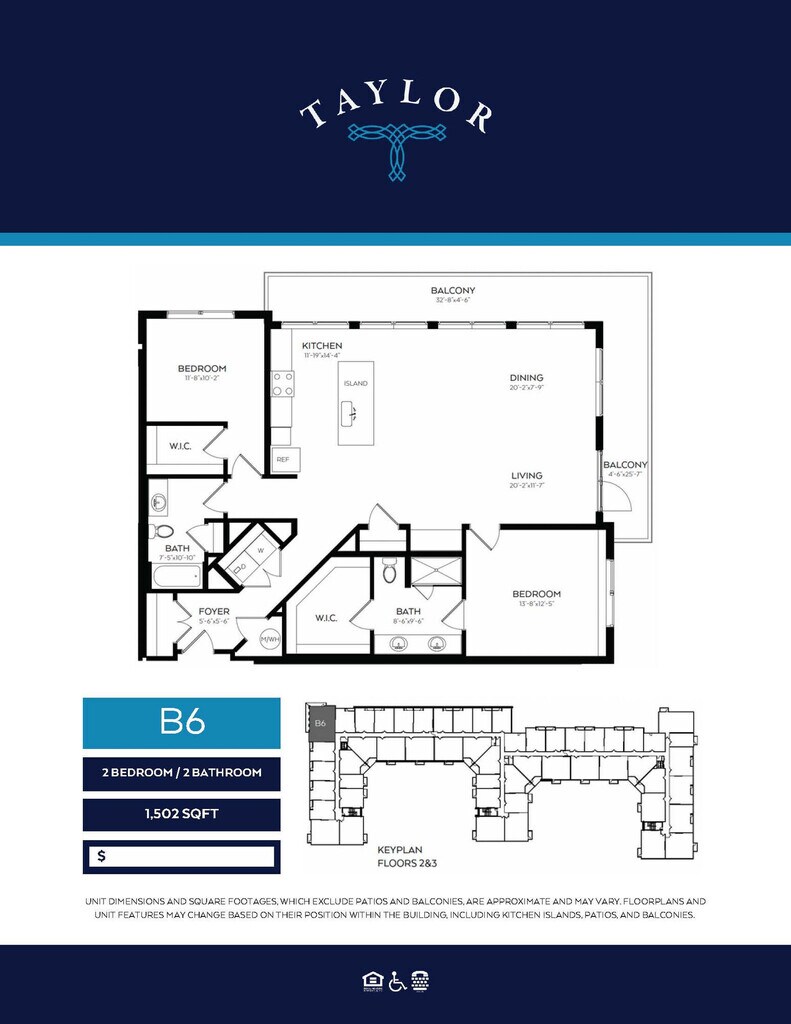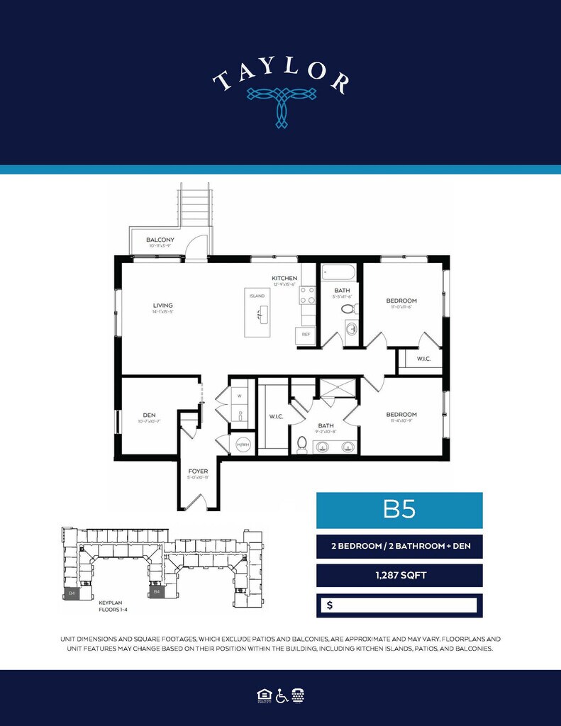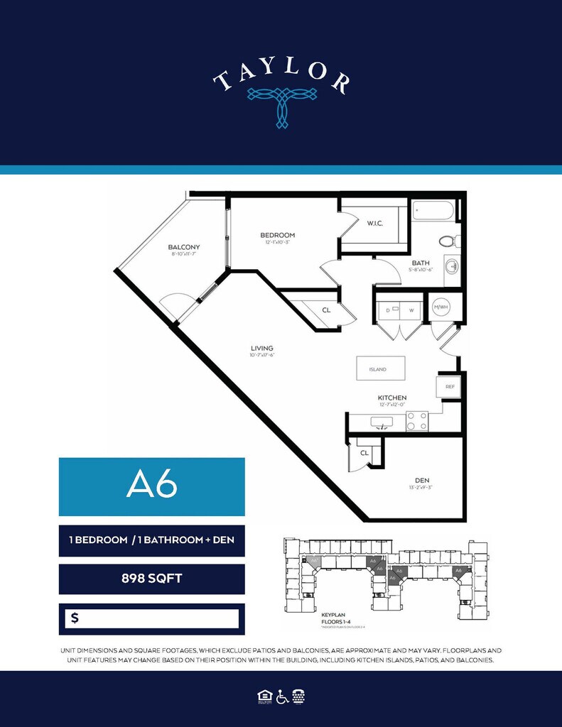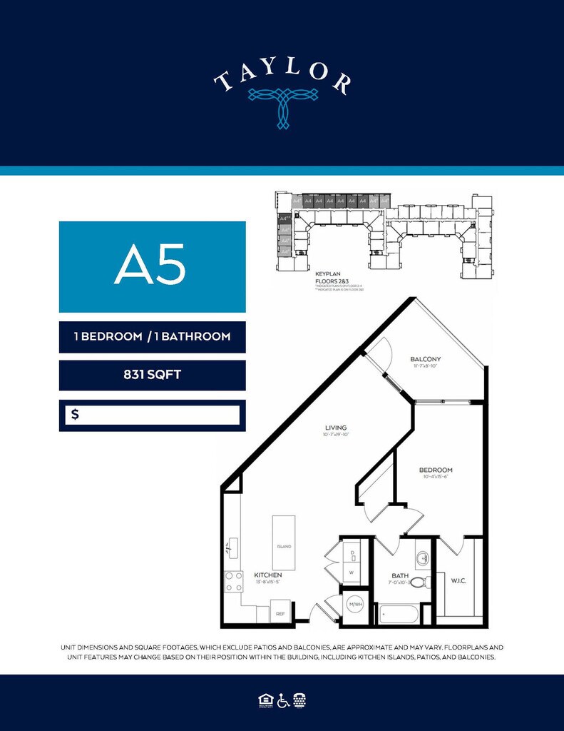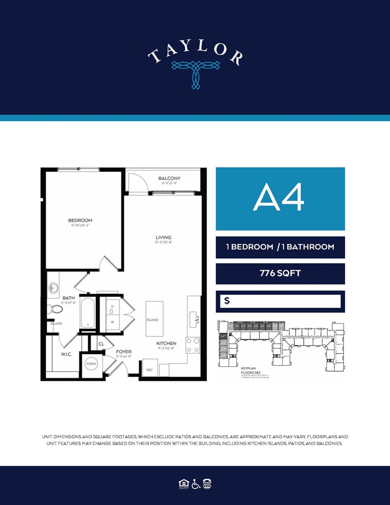 The Taylor offers Studio to 2 Bedroom apartments starting from $1,154 and having 553–1,553 sq ft. Here is the current pricing and availability: