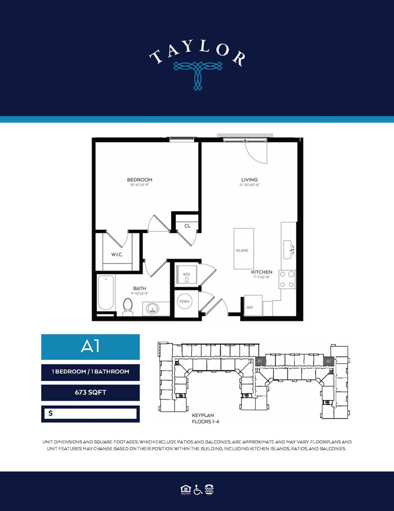 Apartment Model: A1From $1,1541 Bedroom, 1 Bath, 673 sq ftAvailable Now![]()
