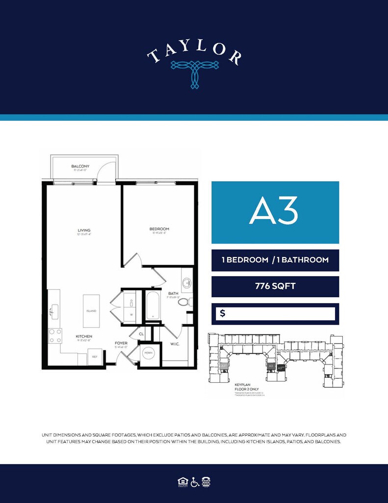 Apartment Model: A3$1,2091 Bedroom, 1 Bath, 776 sq ftUnavailable![]()