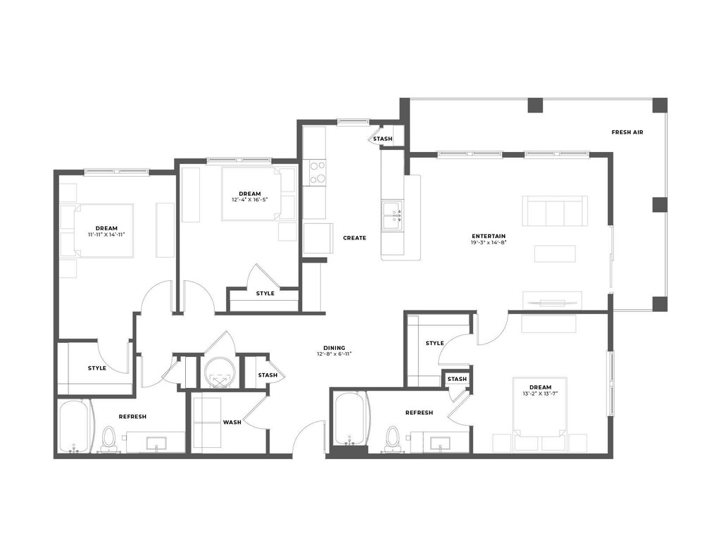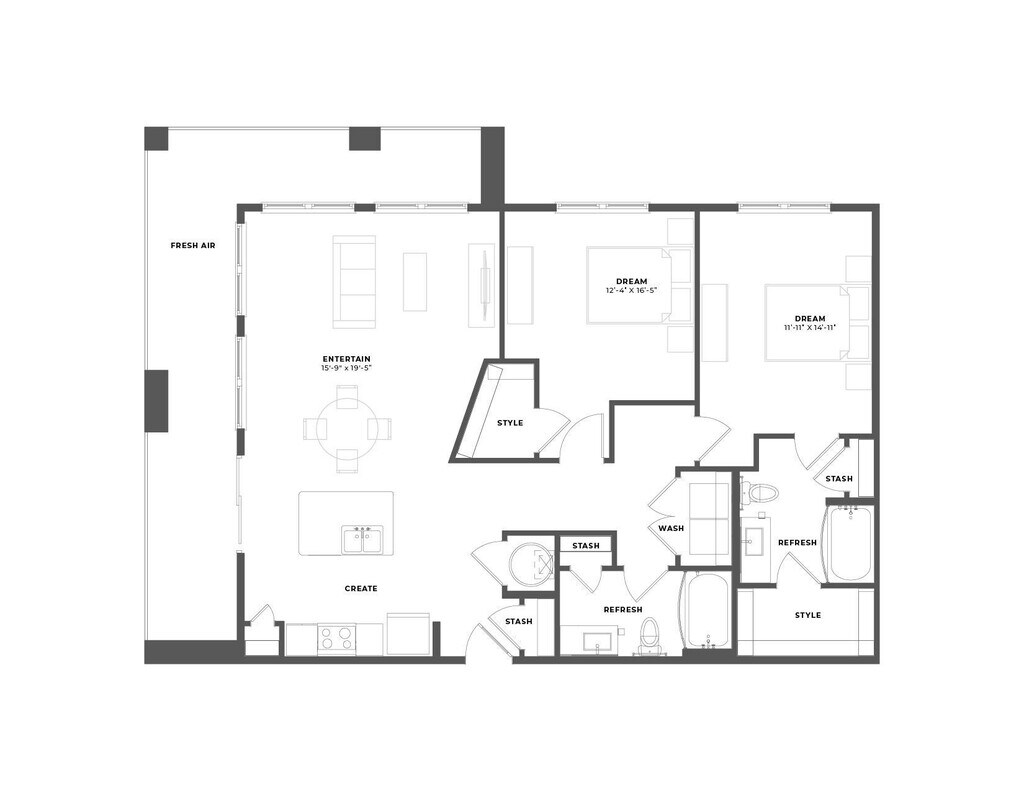 1 Bed, 1 Bath, 892 sq ftAvailable NowLargest 1 BedroomThis is the largest 1 Bedroom at this PropertyModel Gallery