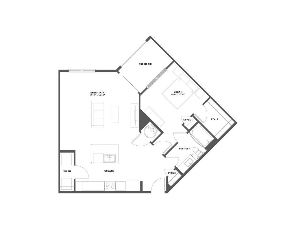 Apartment Model: E1From $1,1841 Bedroom, 1 Bath, 600 sq ftAvailable December 20, 2025![]()