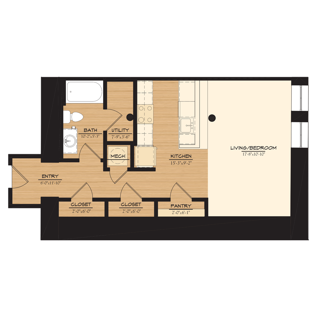 Studio, 1 Bath, 583 sq ftAvailable NowModel Gallery