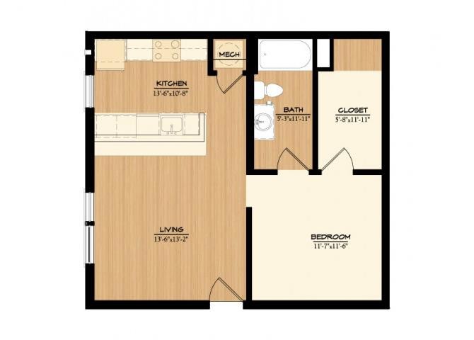 Apartment Model: THE WASH HOUSE A1$1,2001 Bedroom, 1 Bath, 676 sq ftAvailable Now![]()