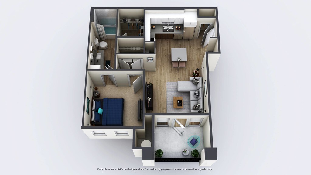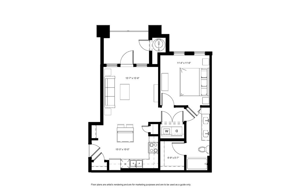 1A - Floorplan 1 Floor plans are artist's rendering. All dimensions are approximate. Actual product and specifications may vary in dimension or detail. Not all features are available in every rental home. Prices and availability are subject to change. Base rent is based on monthly frequency. Additional fees may apply, such as but not limited to package delivery, trash, water, amenities, etc. Deposits vary. Please see a representative for details.
