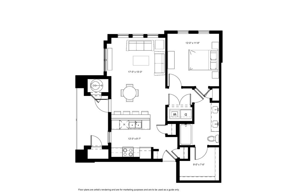1C - Floorplan 1 Floor plans are artist's rendering. All dimensions are approximate. Actual product and specifications may vary in dimension or detail. Not all features are available in every rental home. Prices and availability are subject to change. Base rent is based on monthly frequency. Additional fees may apply, such as but not limited to package delivery, trash, water, amenities, etc. Deposits vary. Please see a representative for details.