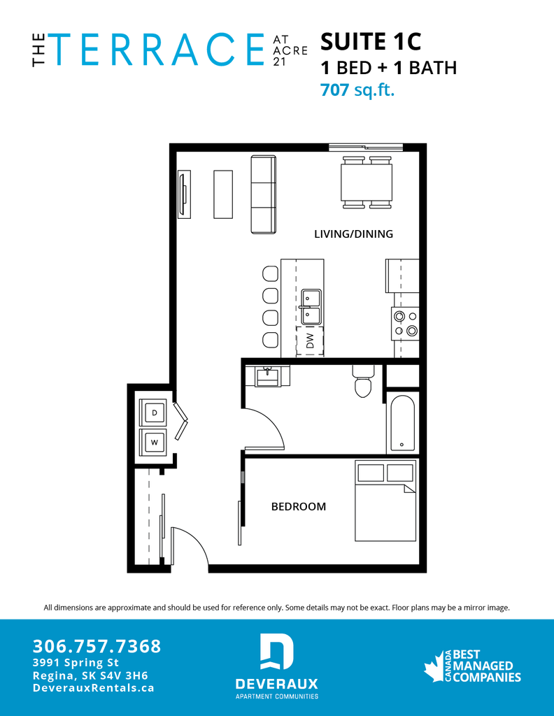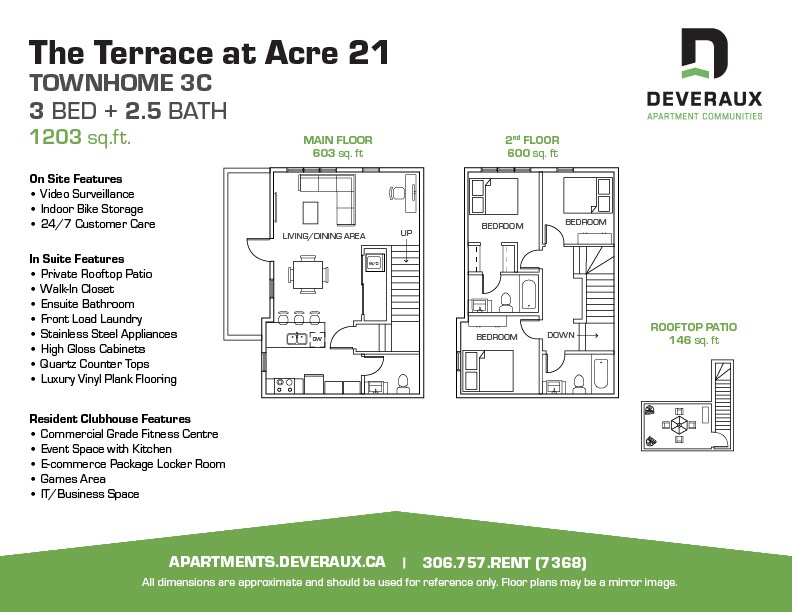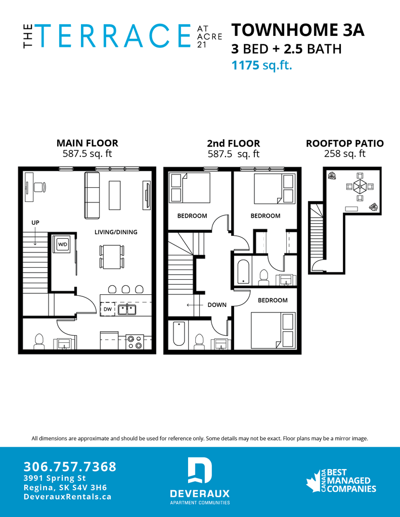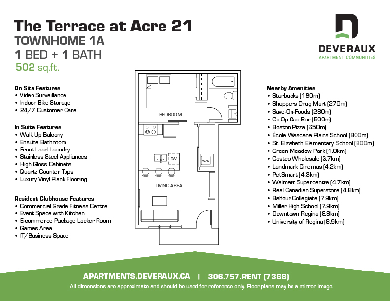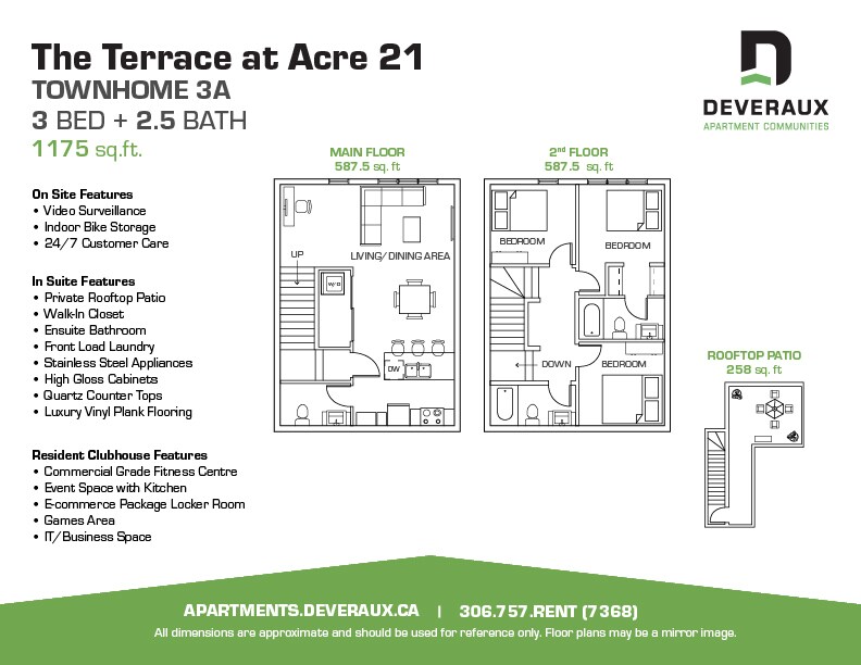 Experience private rooftop patios, modern design and an unbeatable location, at The Terrace at Acre 21 a pet-friendly community like no other!Choose from luxury one, two and three bedroom apartments and townhomes for rent, all with full-size, stainless steel appliances, in-suite laundry and modern finishes including quartz countertops and luxury vinyl plank flooring. You can host private events, complete a workout and much more in an exclusive resident clubhouse complete with a lounge, cafe-style study room and commercial-grade fitness centre.One underground parking stall is included for the residents of the apartment building at The Terrace at Acre 21. For the residents of the townhomes, one surface-level parking spot is included.* Same-day application approvals are available.* Rates are based on a one-year lease and may vary by floor/layout.* Pet restrictions apply. * Reduced security deposit for seniors.