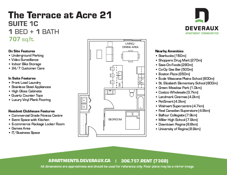 The Terrace at Acre 21 offers 1 to 3 Bedroom apartments starting from C$1,495 and having 502–1,203 sq ft. Here is the current pricing and availability: