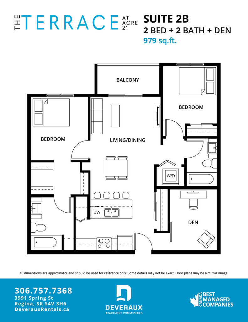 2 Bedroom, 2 Bathroom + Den - Floorplan 2 Apartment Unit: 3971-208Apartment Model: 2 Bedroom, 2 Bathroom + Den$2,2002 Bedroom, 2 Bath, 979 sq ftAvailable January 1, 20262 Bedroom, 2 Bathroom + Storage