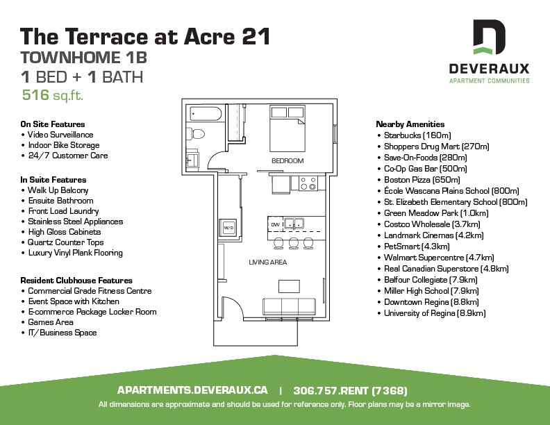 1 Bed, 1 Bath, 516 sq ftAvailable Nov 1Model Gallery