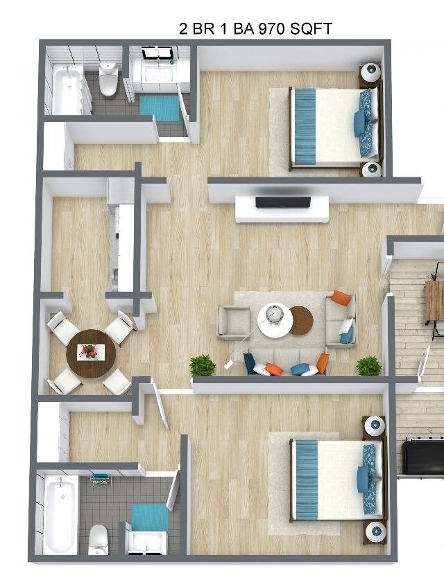Apartment Model: A3From $9571 Bedroom, 1 Bath, 700 sq ftAvailable Now![]()