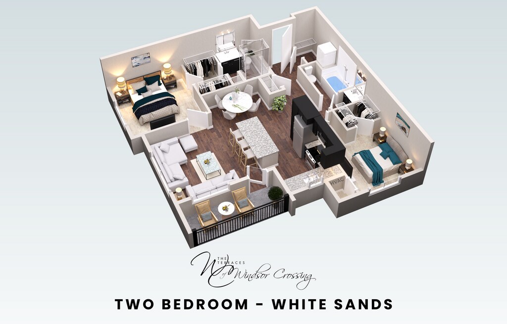 The Terraces of Windsor Crossing offers Studio to 3 Bedroom apartments starting from $1,299 and having 534–1,435 sq ft. Here is the current pricing and availability: