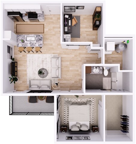 1 Bed, 1 Bath, 566 sq ftAvailable NowModel Gallery