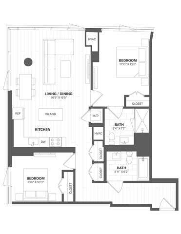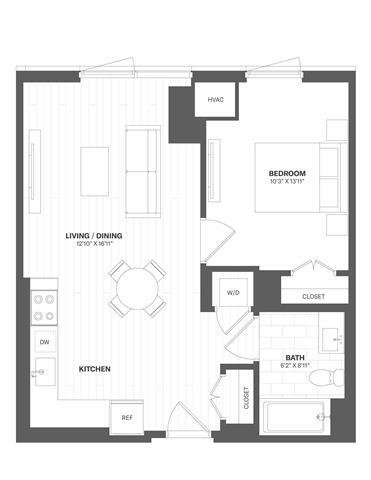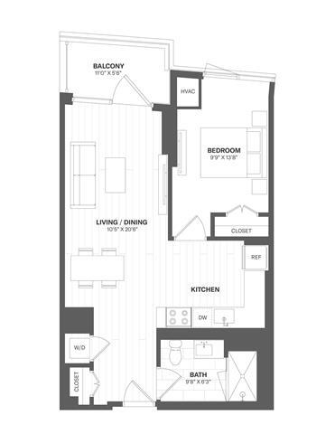 Apartment Model: 1 Bed/1 Bath-a61From $2,7991 Bedroom, 1 Bath, 717 sq ftAvailable Now![]()