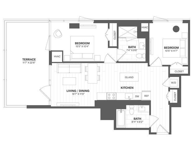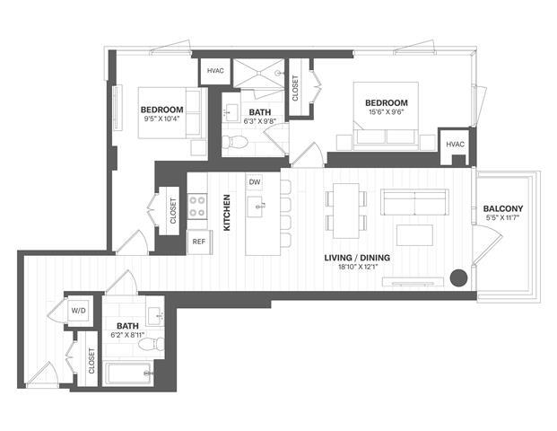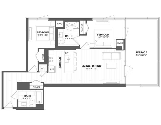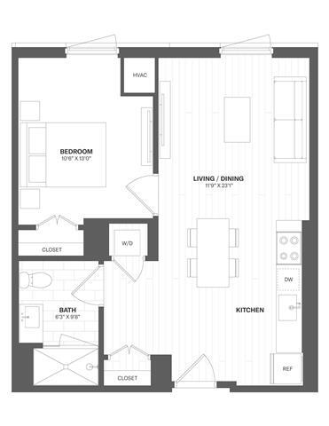 Studio, 1 Bath, 626 sq ftModel Gallery
