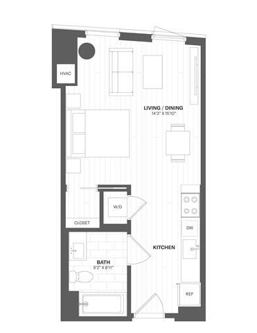 Studio, 1 Bath, 485 sq ftAvailable January 14, 2026Model Gallery
