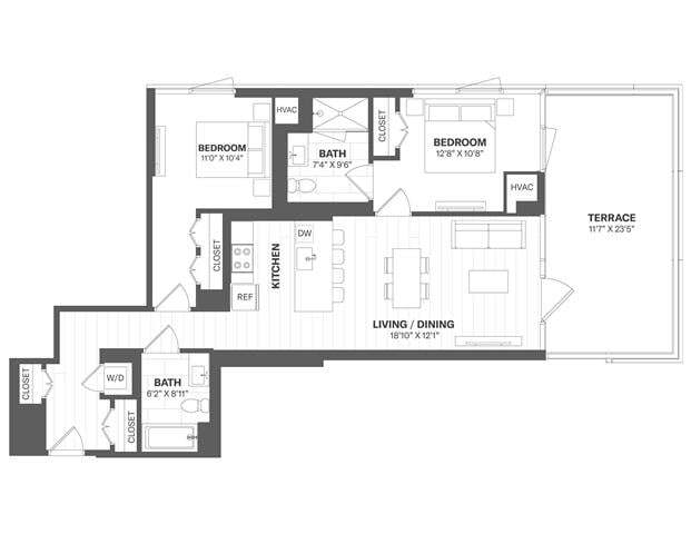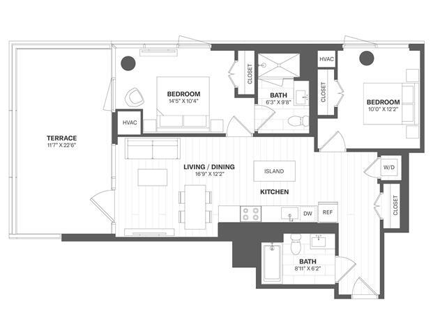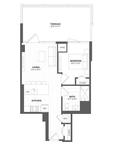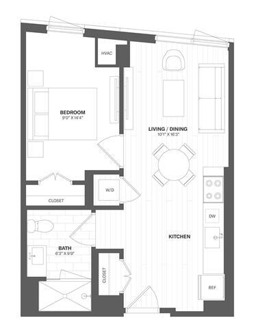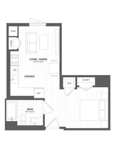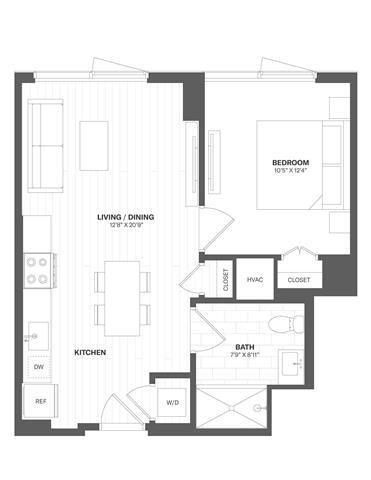 Studio, 1 Bath, 629 sq ftLargest StudioThis is the largest Studio at this PropertyModel Gallery