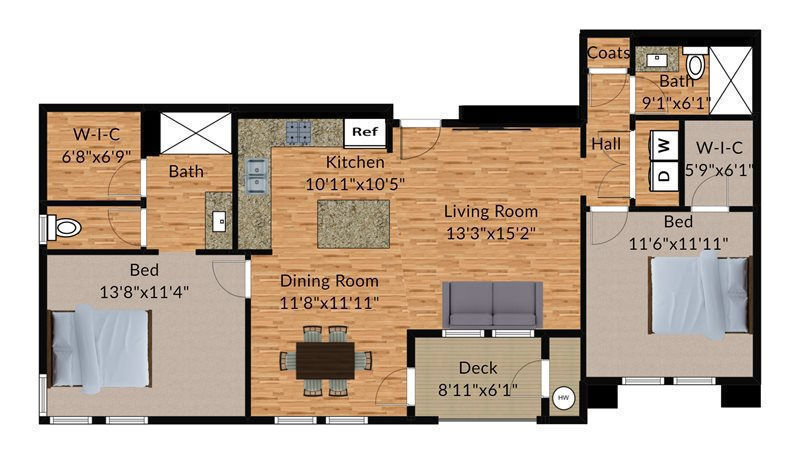 1 Bed, 1 Bath, 823 sq ftAvailable NowModel Gallery