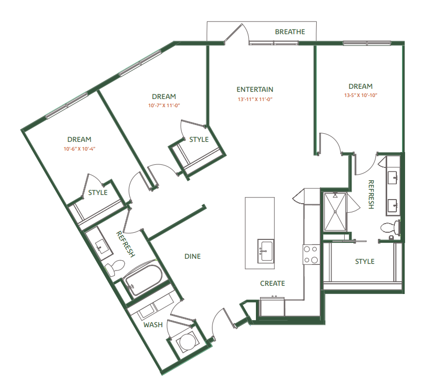 Apartment Model: C1Call For Rates3 Bedroom, 2 Bath, sq ftUnavailableFloor plans are artist's rendering. All dimensions are approximate. Actual product and specifications may vary in dimension or detail. Not all features are available in every rental home. Please see a representative for details.