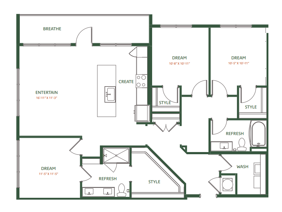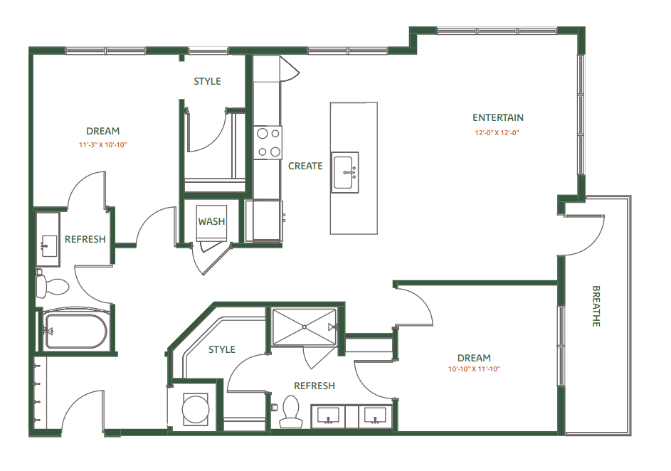 - Bright, spacious open-concept floor plans