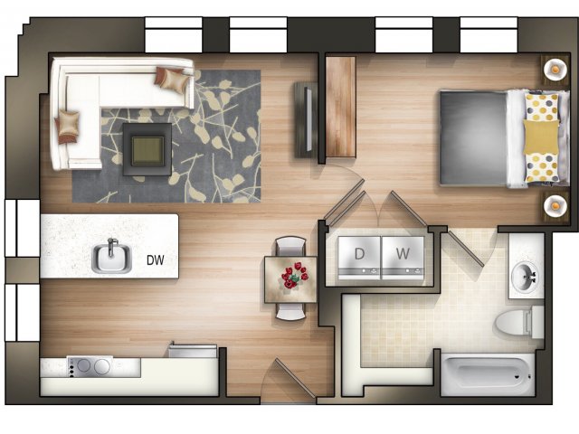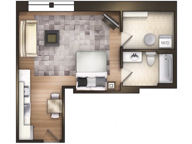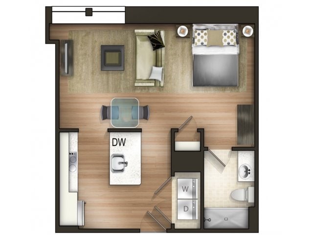 Studio, 1 Bath, 556-600 sq ftLargest StudioThis is the largest Studio at this PropertyModel Gallery