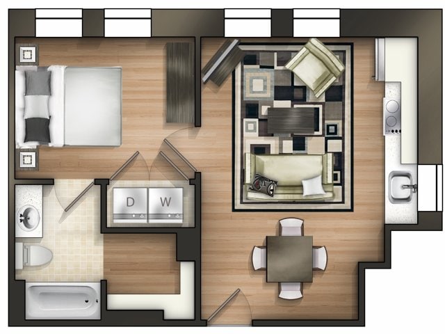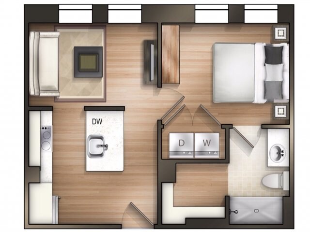 Apartment Model: CapitolStudio, 1 Bath, 556-600 sq ftUnavailableCapitol - Floorplan 1 1 Bedroom