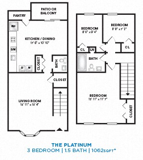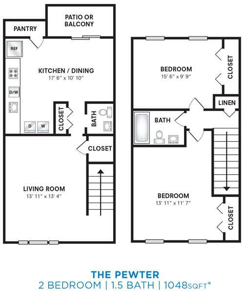Apartment Model: Two Bedroom 1.5 Bath Townhome - 1,048 sqftFrom $1,5052 Bedroom, 1.5 Bath, 1048 sq ftAvailable Now![]()