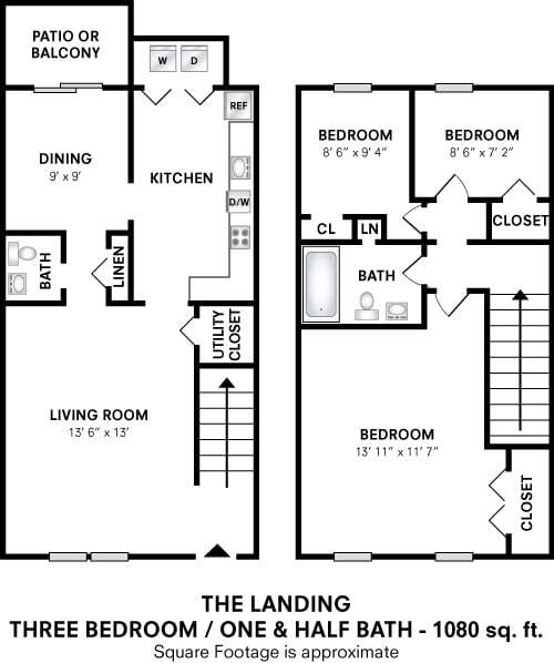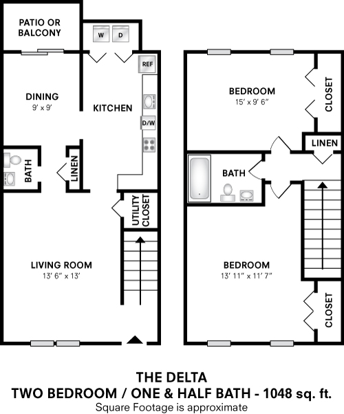 Two Bedroom 1.5 Bath Townhome - 1,048 sqft - Floorplan 1 ![]()