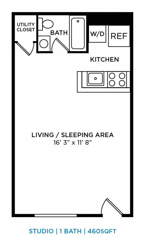 Studio - 420 sqft - Floorplan 1 ![]()