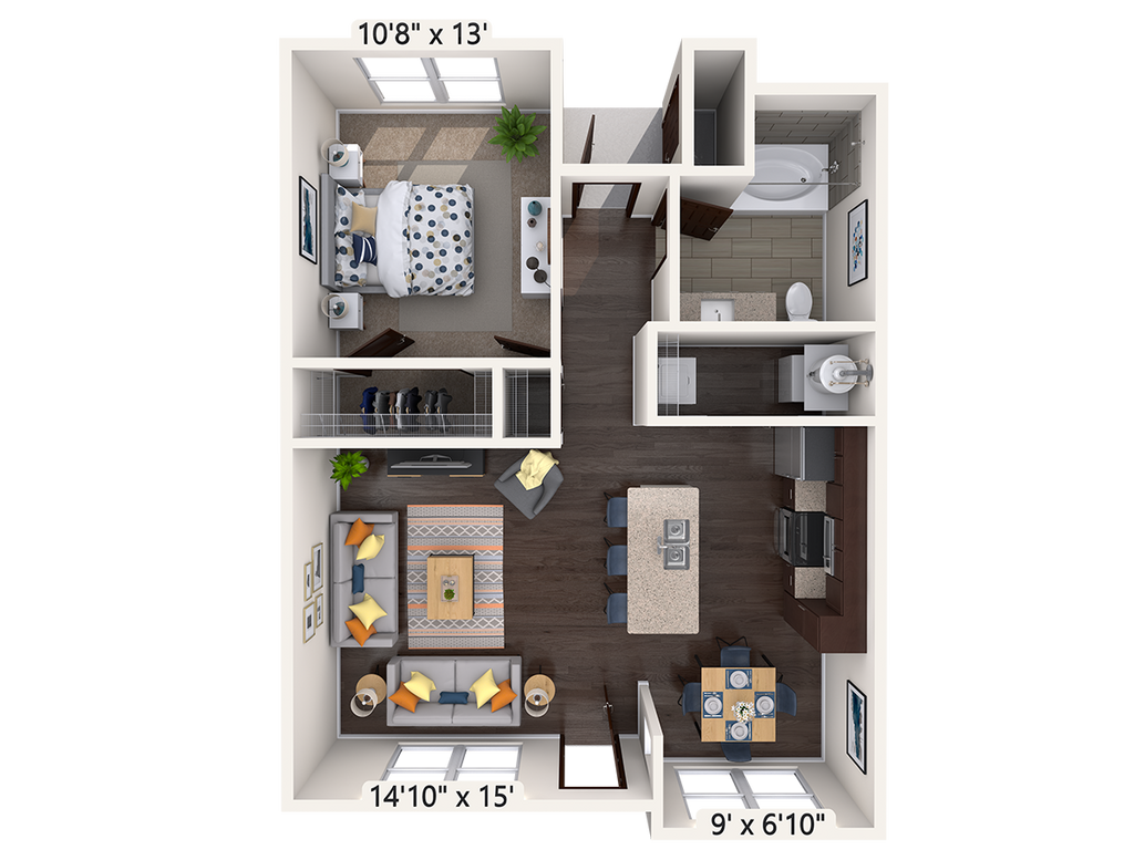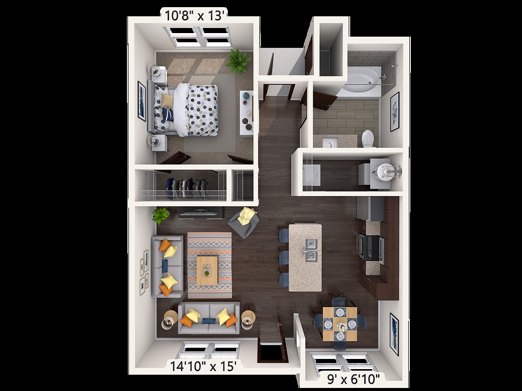 1 Bed, 1.5 Baths, 948 sq ftAvailable NowLargest 1 BedroomThis is the largest 1 Bedroom at this PropertyModel Gallery