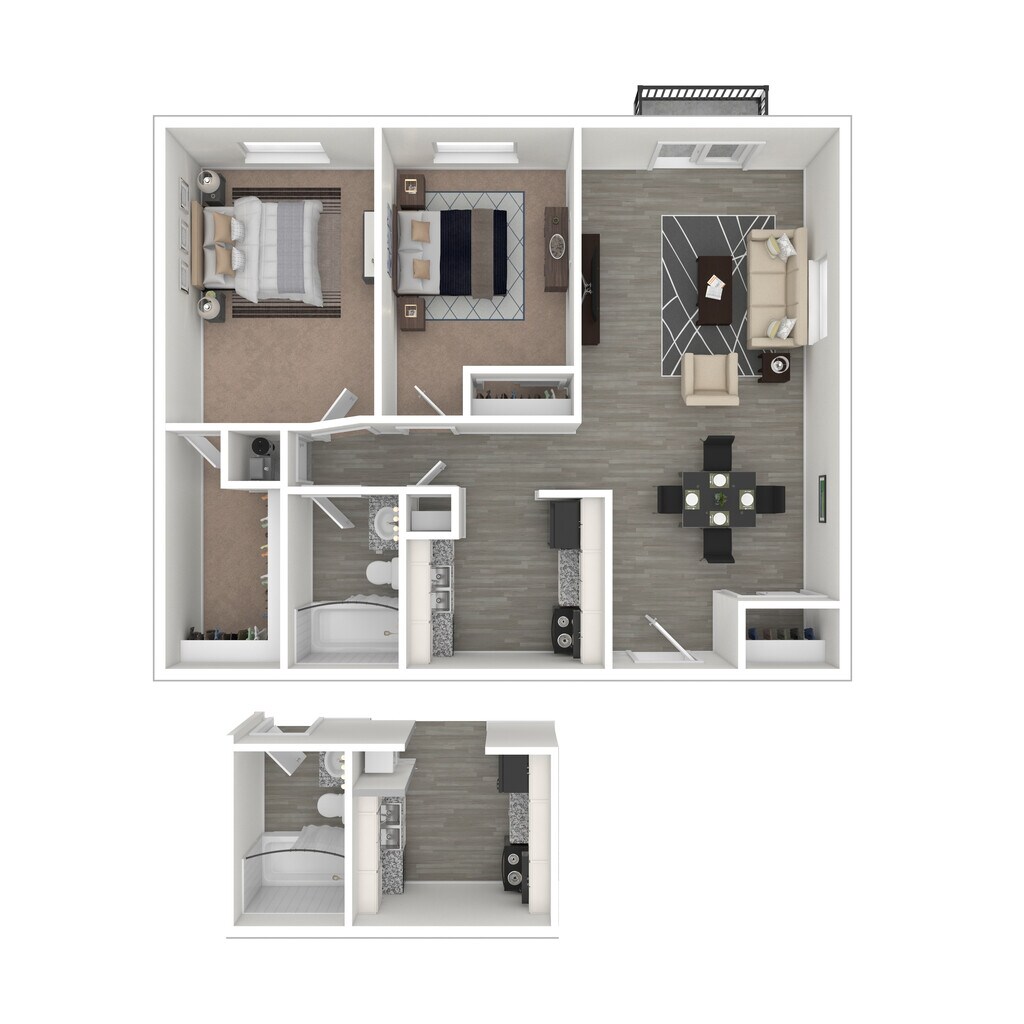 2 Beds, 1 Bath, 760 sq ftAvailable NowModel Gallery
