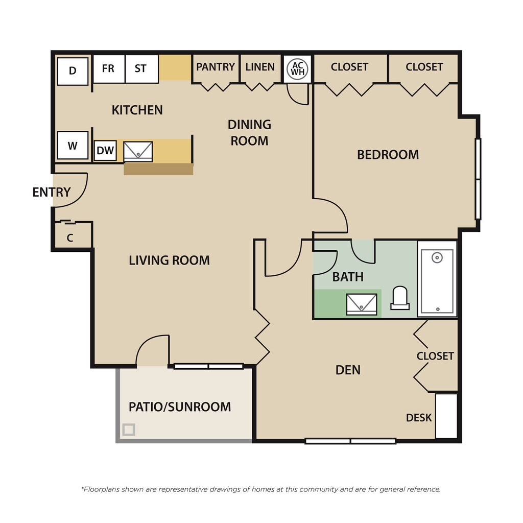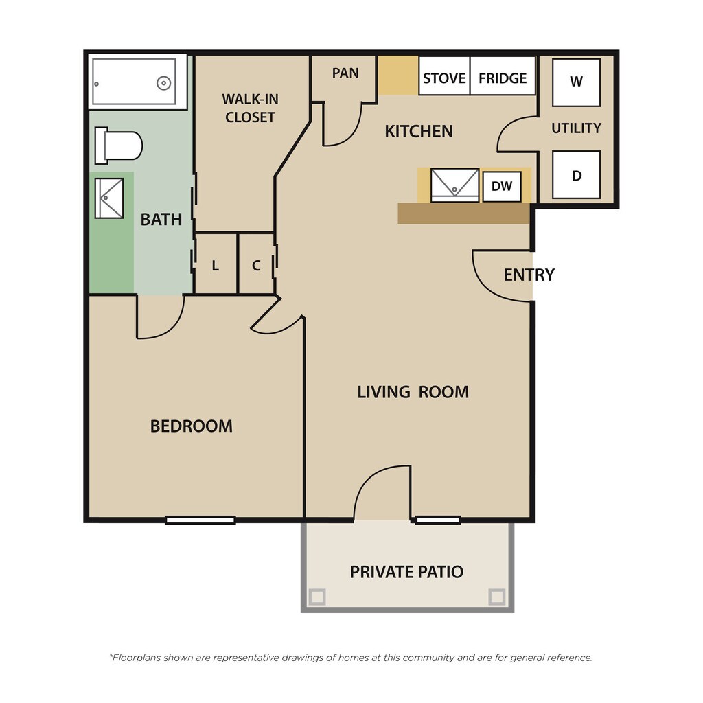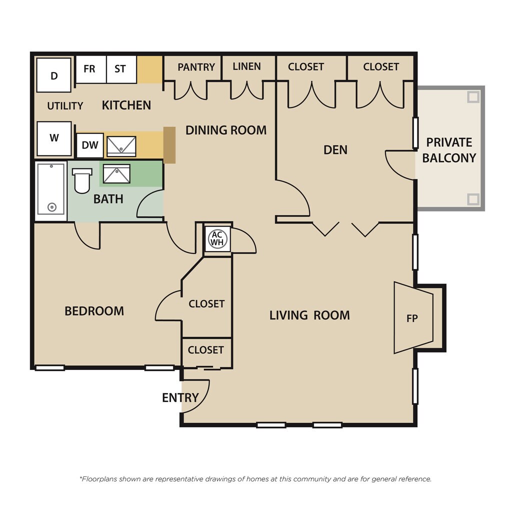 Apartment Model: GROVE A21 Bedroom, 1 Bath, 614 sq ftUnavailable![]()