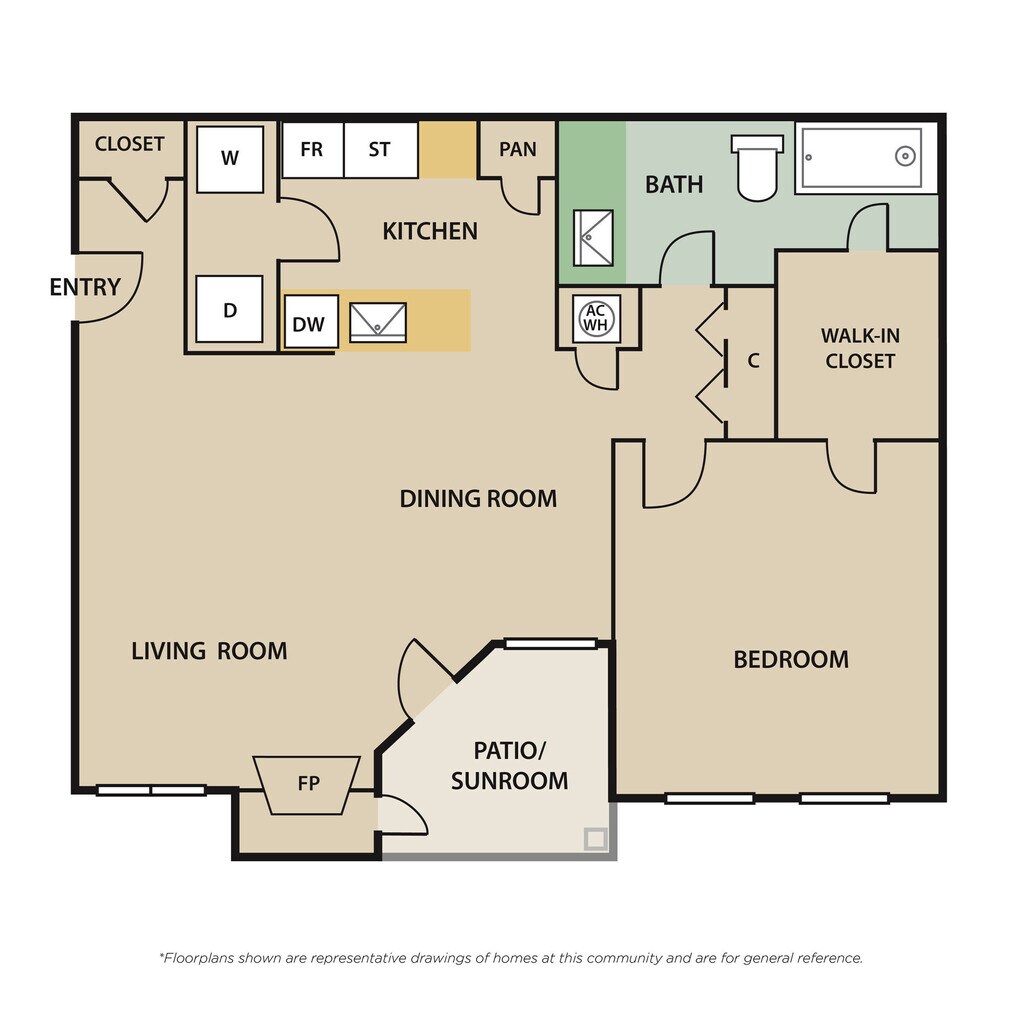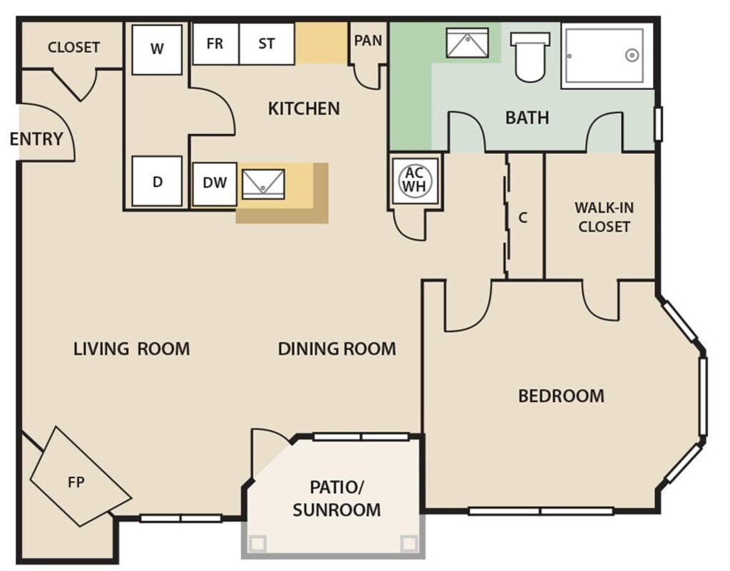 Apartment Model: PARK A11 Bedroom, 1 Bath, 613 sq ftUnavailable![]()