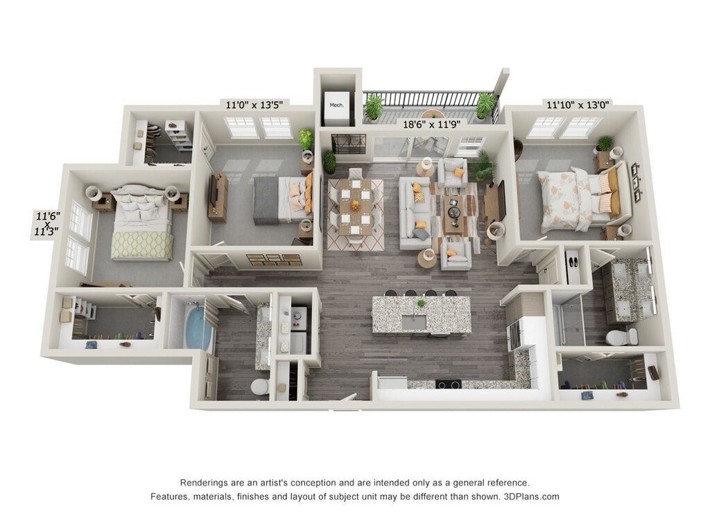 Apartment Model: A3From $1,3451 Bedroom, 1 Bath, 732 sq ftAvailable Now![]()