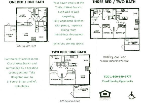 The Trails at West Branch Apartment family community features all the luxury you would find in a home. Wall to wall neutral carpeting, spacious eat-in kitchens and pantrys, mini-blind windows coverings, and VERY large bathrooms. Select apartments even feature a scenic woodland view. Nestled at the end of 3rd Street, The Trails at West Branch is conveniently located off of Houghton Avenue, simply turn left on S. Fourth Street and left on Ripley. Accepts Section 8. Contact Times: Monday - Friday - 8:30am - 4:00pm (RLNE63764)