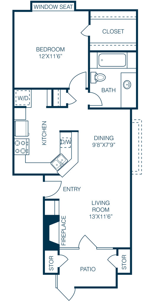 1 Bedroom 1 Bath A1 - Floorplan 1 2 Bedrooms