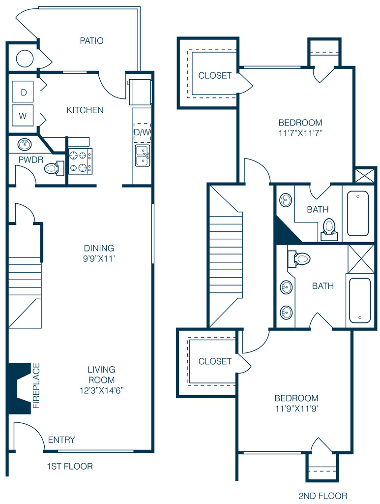 2 Bedroom 2 Bath Townhome - Floorplan 1