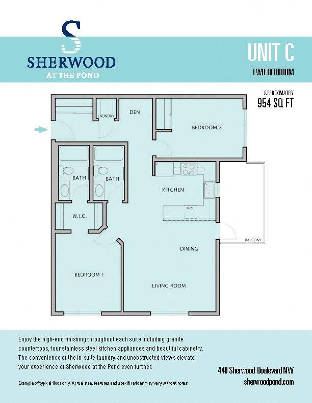 Two Bedrooms + Den + 2 Bathrooms - Floorplan 1 Apartment Unit: 420-307Apartment Model: Two Bedrooms + Den + 2 Bathrooms2 Bedroom, 2 Bath, 954 sq ftAvailable December 1, 20253 Bedrooms
