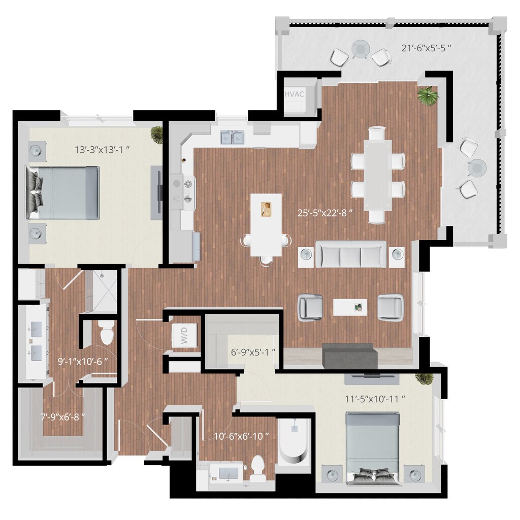 Studio, 1 Bath, 579 sq ftAvailability Details