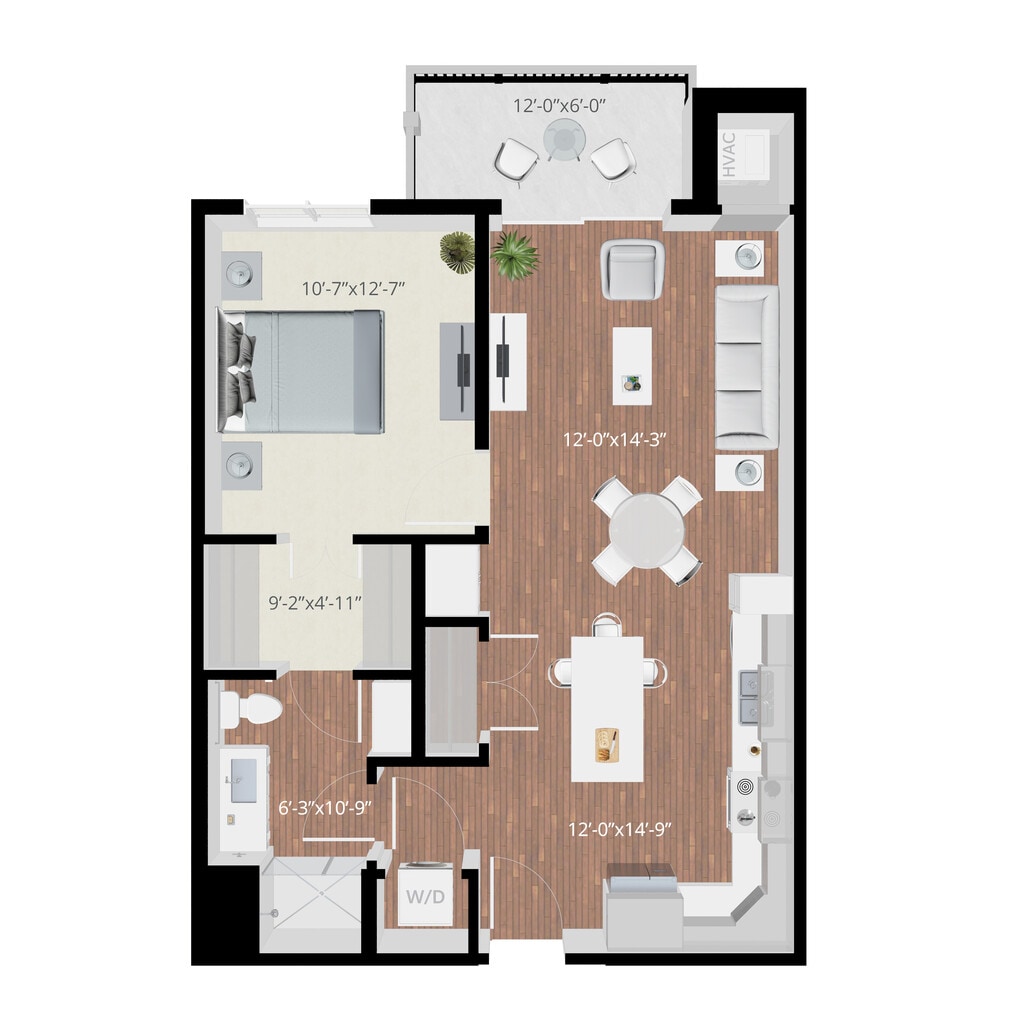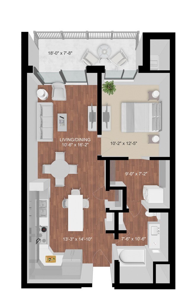 Studio, 1 Bath, 632 sq ftAvailability Details