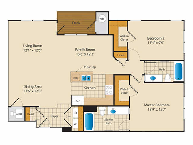Apartment Model: The Bardi (with den)1 Bedroom, 2 Bath, 998 sq ftAvailable NowFloorplansPhotos![]()