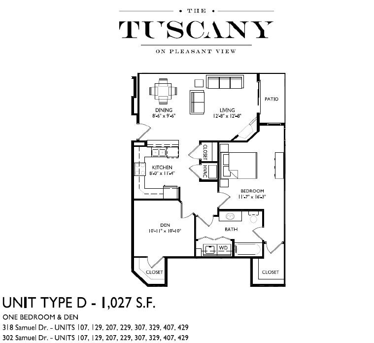 The Tuscany on Pleasant View offers Studio to 2 Bedroom apartments starting from $1,615 and having 523–1,309 sq ft. Here is the current pricing and availability: