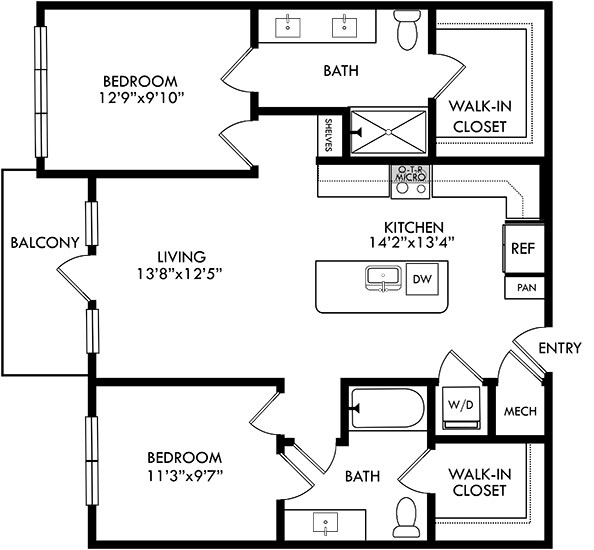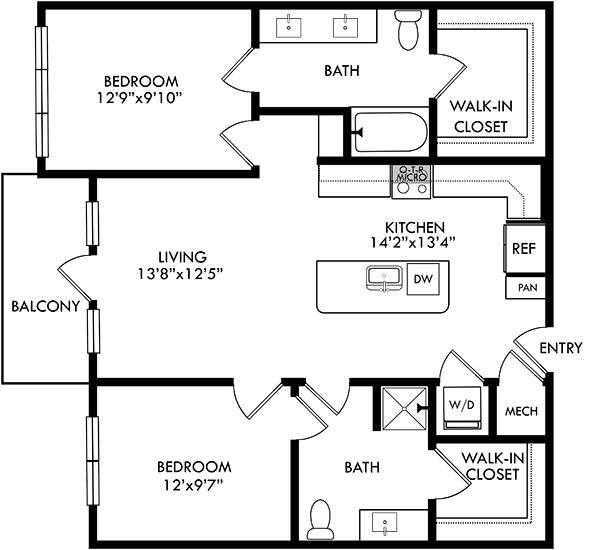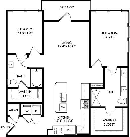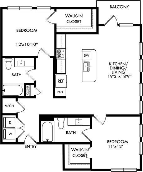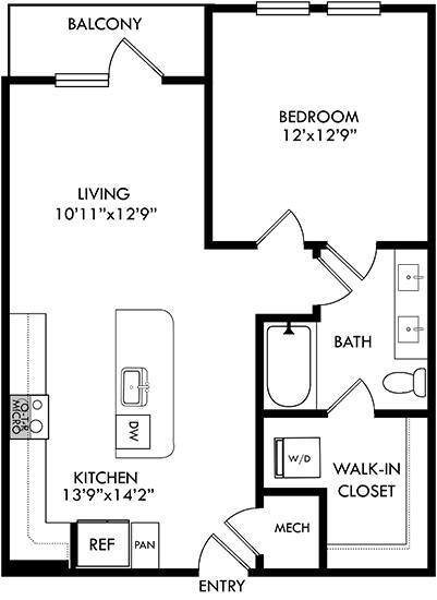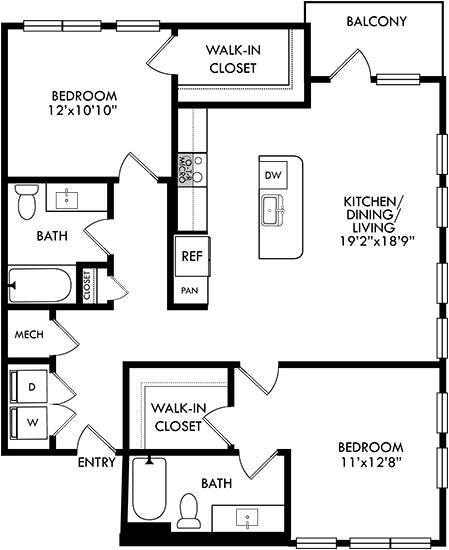 1 Bed, 1 Bath, 743 sq ftAvailable NowLargest 1 BedroomThis is the largest 1 Bedroom at this PropertyModel Gallery